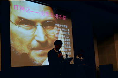 On the seminar, in memory of Jobs, students made keynote speeches in terms of his persistent seek for details, animated cartoon world, and marketing strategies etc.