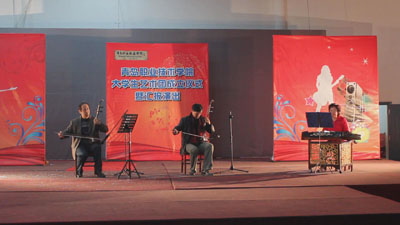 Vice President Qin Chuan attended the ceremony, and made an instrumental ensemble with two other teachers in the following showcase performance by the troupe' s different groups.