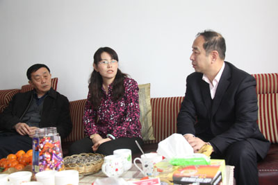 On February 6th, President Qin Chuan (right ) visited Professor Zhou Jiahui(left), a QTC retired teacher and Xue Yue'e (middle), QTC's invited morality tutor and one of the Best Techers Working in the Rural Area.